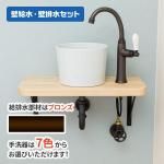 ポケットグースネック木製カウンターセット 壁給水×床排水ブロンズ