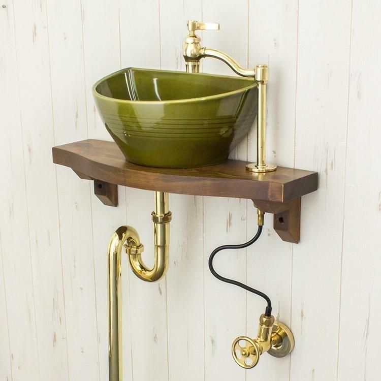 コンパクト手洗いクレセントのボウル、カウンター、給排水部材の一式セットです。